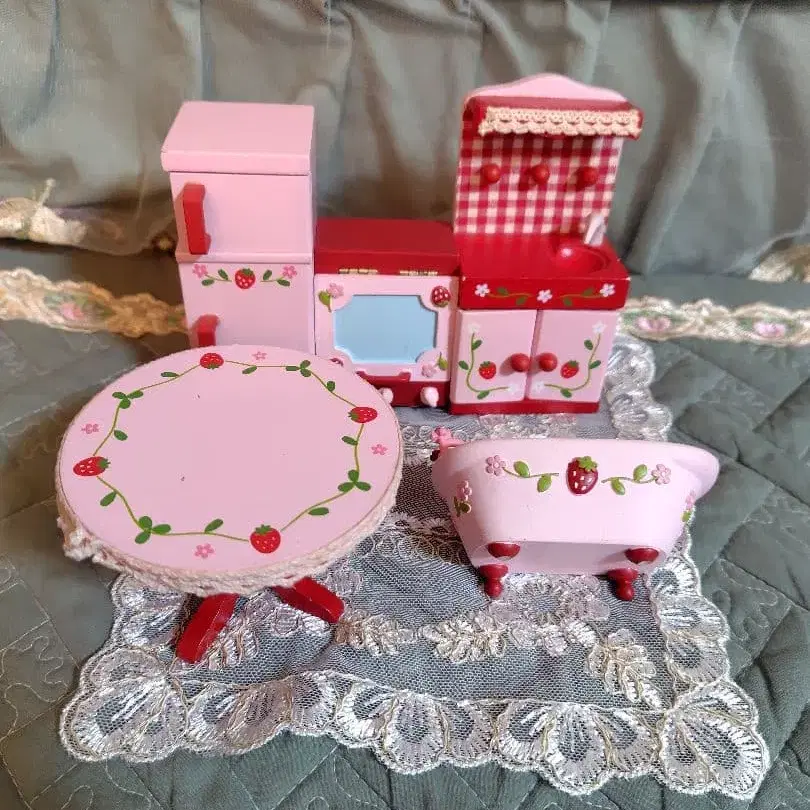 마더하우스 딸기 모티브의 핑크 주방 세트
