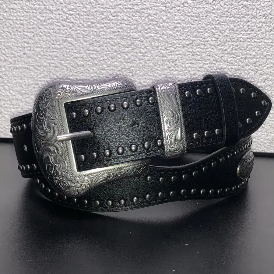 웨스턴 벨트 블랙 스터드 장식 전체 길이 104cm 폭 3.8cm
