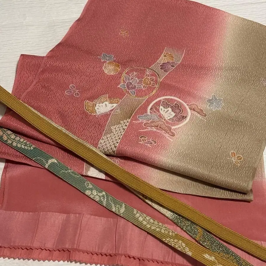 [새상품] 순수 실크 오비 장식 천*허리띠 2세트 원형 나비 포멀