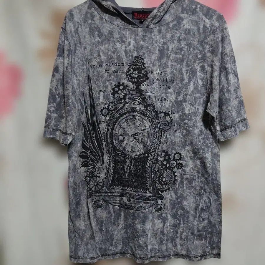 Dearart 그레이 얼룩 염색 후드 부착 T셔츠 M