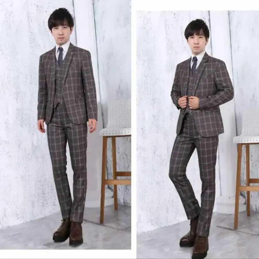 수트 남성용 재고 사이즈 M~5XL 쓰리피스 투버튼 체크 무늬