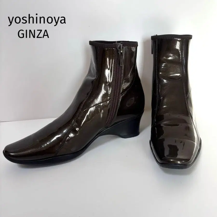긴자 요시노야 우천 겸용 다크 브라운 에나멜 지퍼 달린 숏부츠