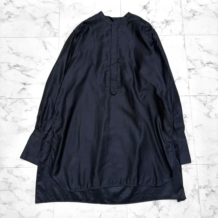 새상품급 맥피 밴드 카라 롱 셔츠 블랙 블라우스 백 개더