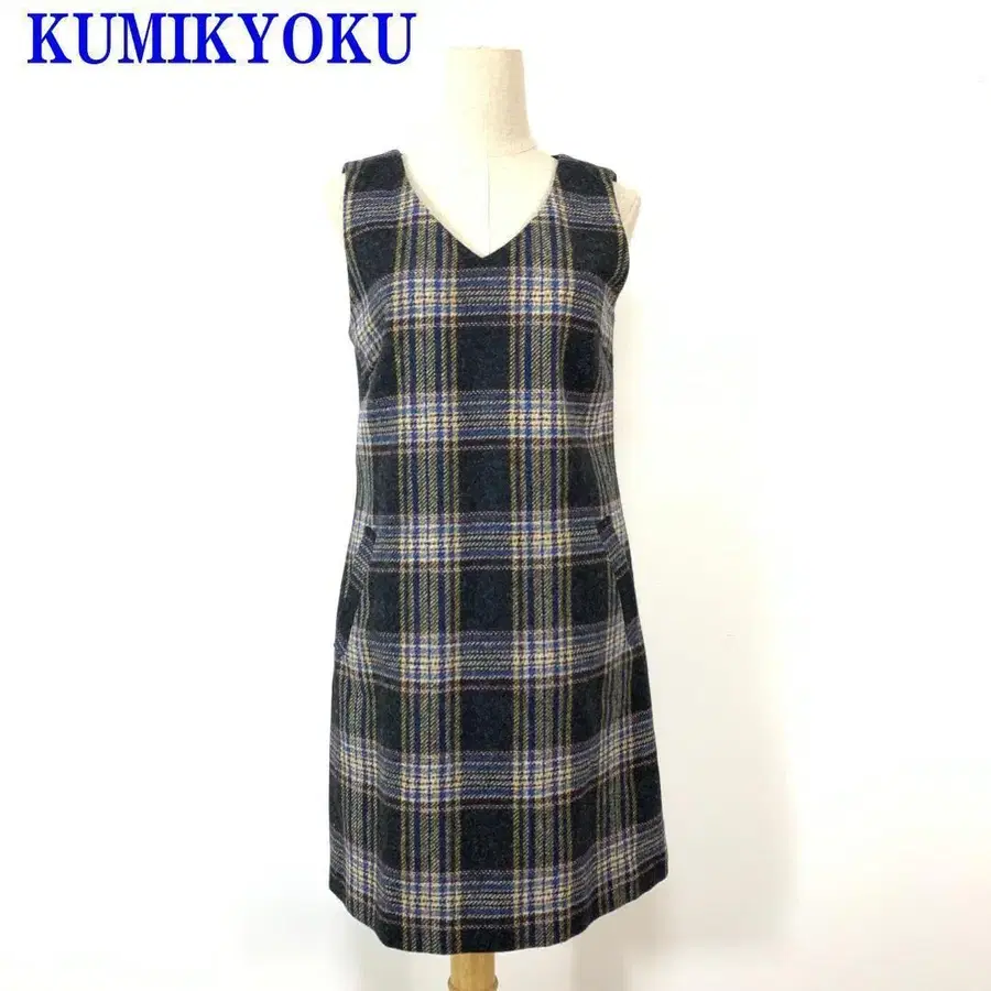 쿠미쿄쿠 슬리브리스 원피스 그레이 네이비 울 100% 2 C2439