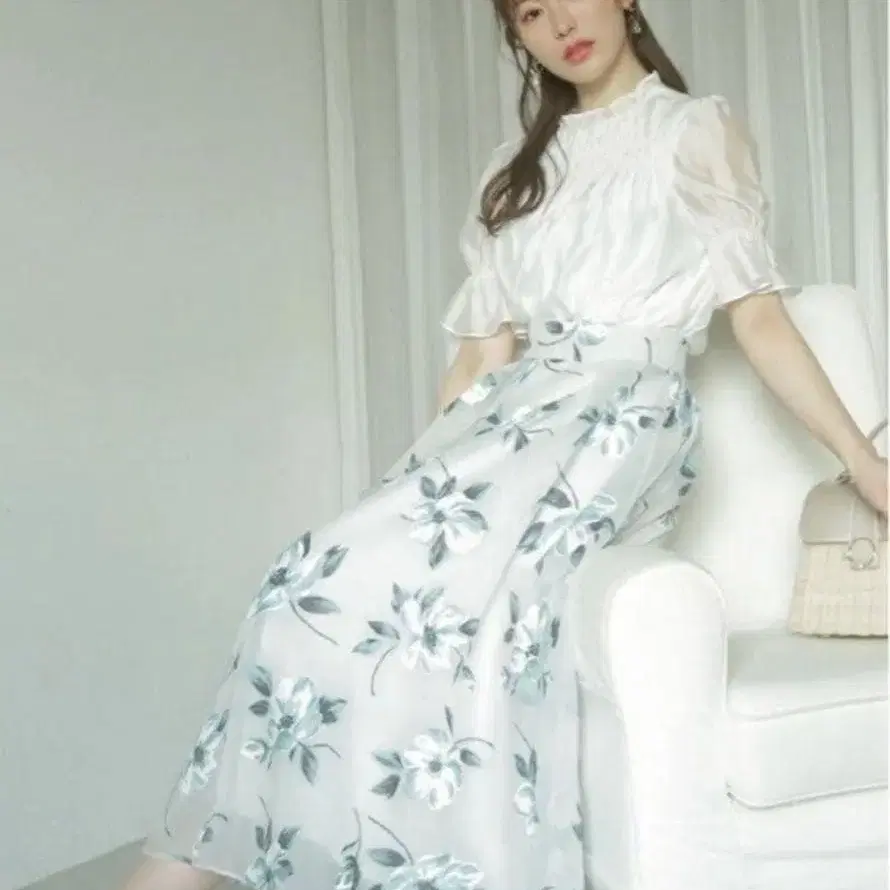 PROPORTION BODY DRESSING 러버 플라워 플레어 스커트
