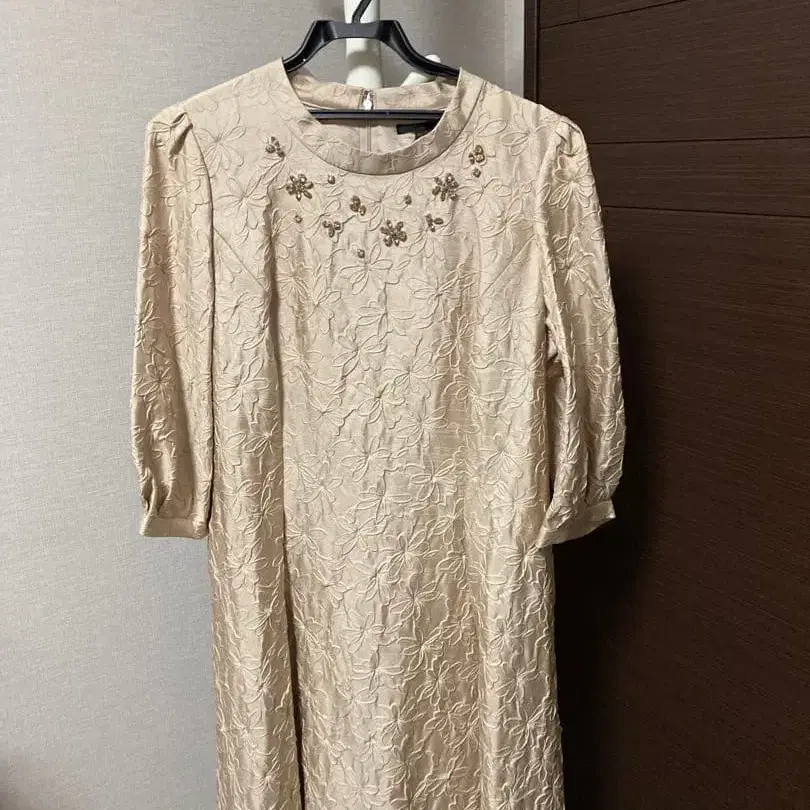[ 새상품 ] TO BE CHIC 꽃무늬 자수 베이지 7부 소매 원피스