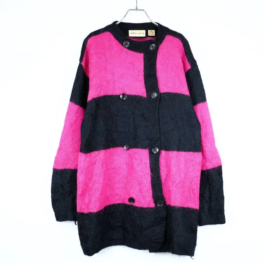 1980s 빈티지 모헤어 더블 브레스트 니트 가디건 스웨터 구제 의류