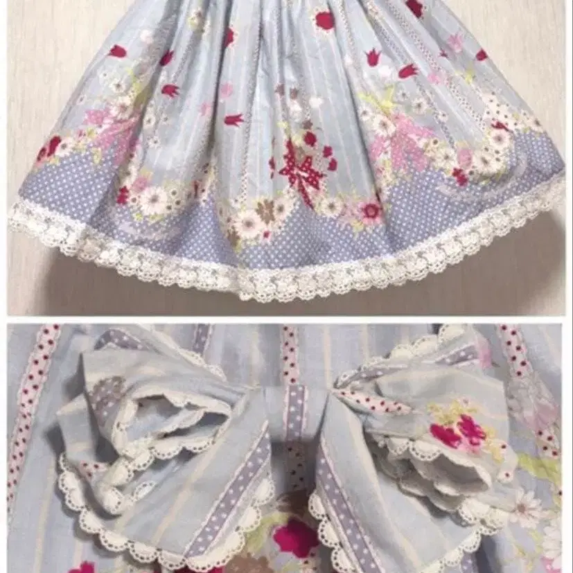 베이비더스타즈 샤인브라이트 스카이블루 꽃무늬 미디 스커트