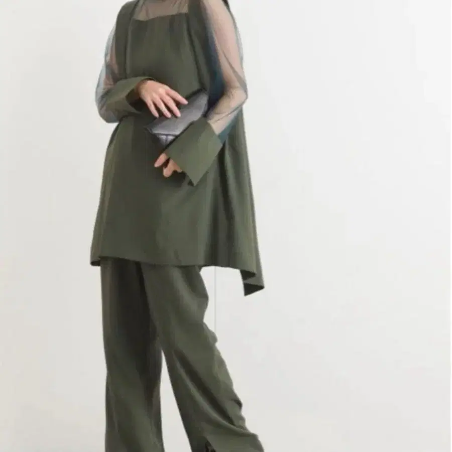 테라스 시스루 튜닉 블라우스 + 센터 핀턱 팬츠 상하의 2세트