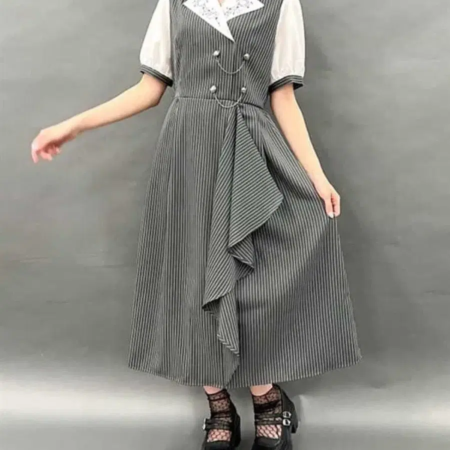 야간 자수 옷깃 도킹 원피스