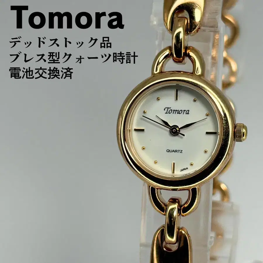 Tomora의 데드스탁 상품 팔찌형 쿼츠 손목시계입니다. 골드톤의 팔찌 일체형 디자인에 고급스럽고 보기 쉬운 화이트 다이얼을 조합한 엘레강트한 제품입니다. 미사용 보관품이라 상태가 매우 좋으며, 배터리 교체 완료되어 받으시면 바로 사용 가능합니다. 액세서리처럼 착용할 수 있는 섬세한 사이즈감은 평소 착용은 물론 포멀이나 오피스, 선물로도 최적입니다. [여성용 손목시계] [팔찌 시계] [데드스탁 쿼츠]를 찾으시는 분께 추천합니다.