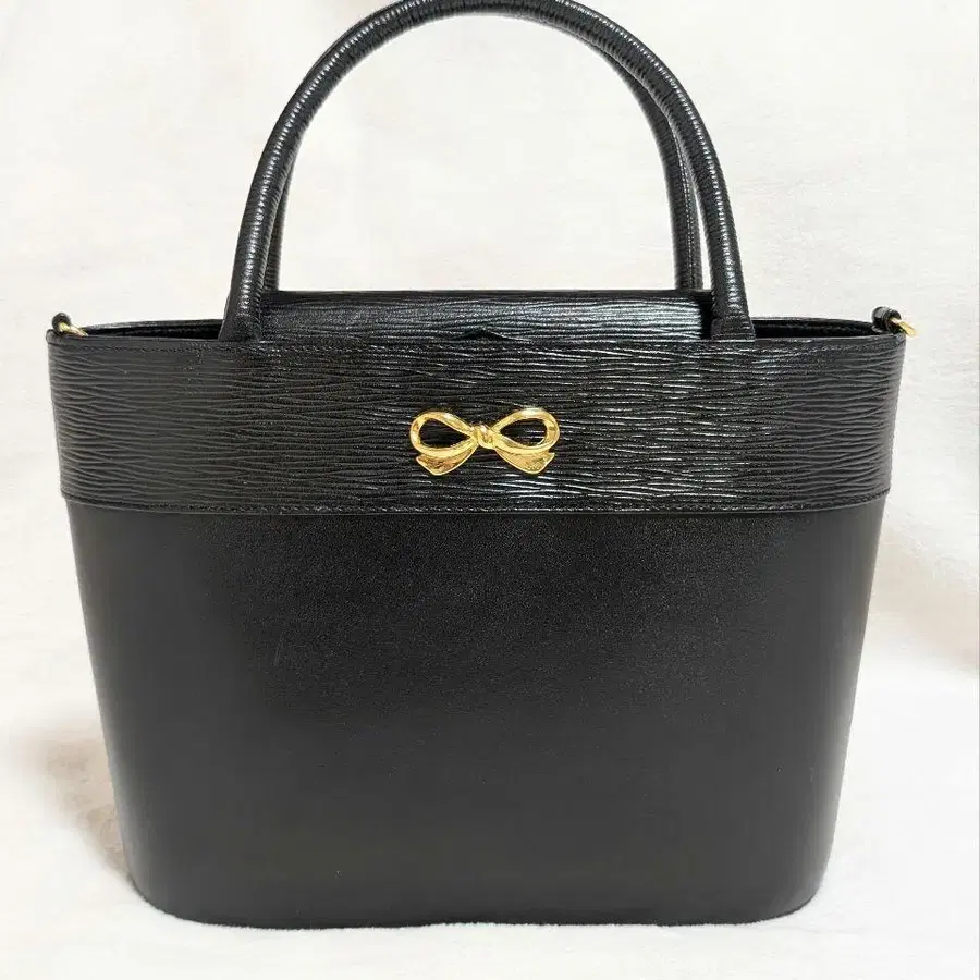 새상품급 하나에모리 리본 백 포멀 가죽 블랙 원통형