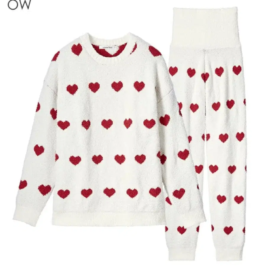SNS에서 화제가 된 온열 관리로 큰 인기를 얻고 있는 복대 포함 룸웨어에서, 부드럽고 포근하며 가벼운 니트 소재가 등장! 큐트한 하트 무늬를 흩뿌린 디자인이 입는 것만으로도 기분을 좋게 해줄 것 같아요.