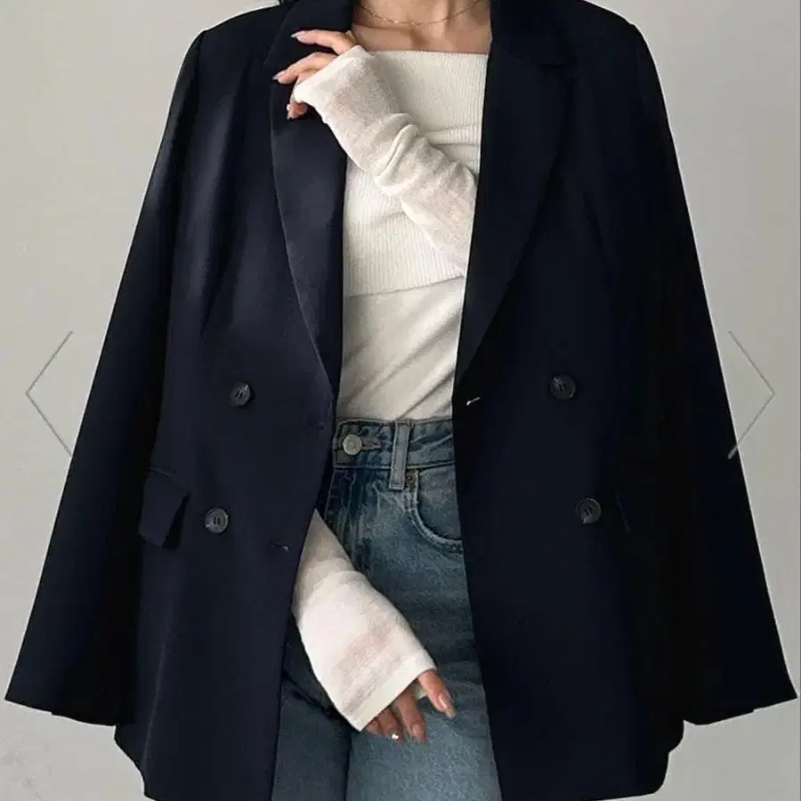 [흡연 반려동물 없음] 네이비 더블 브레스트 테일러드 자켓