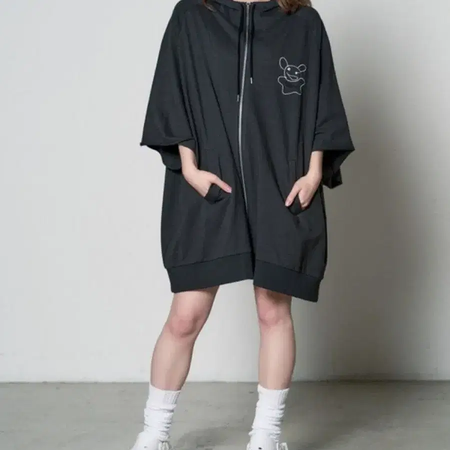 호와이니 키모카와 후드티 블랙 반팔 서브컬쳐 지뢰