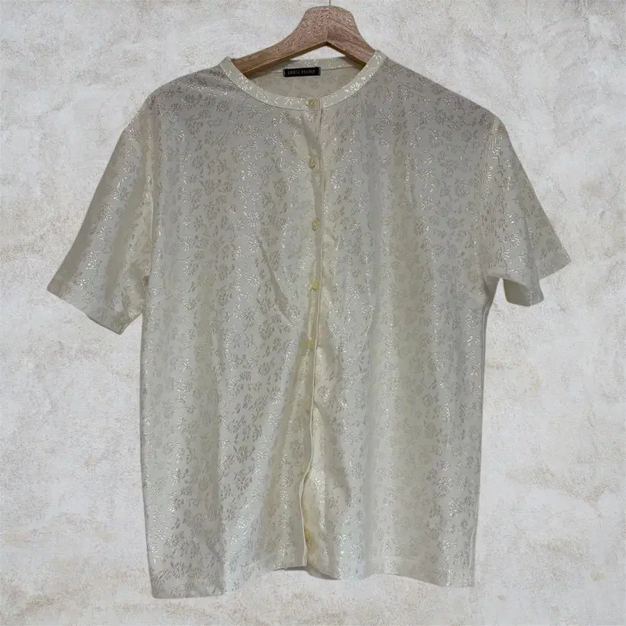 반팔 블라우스 아이보리 꽃무늬 비침 빈티지 깔끔한 자수 반짝임