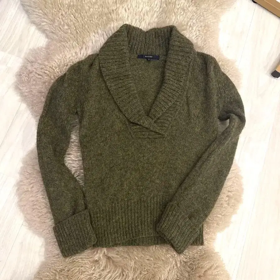 MACPHEE 올리브 그린 니트 스웨터 울 사이즈 1 V넥