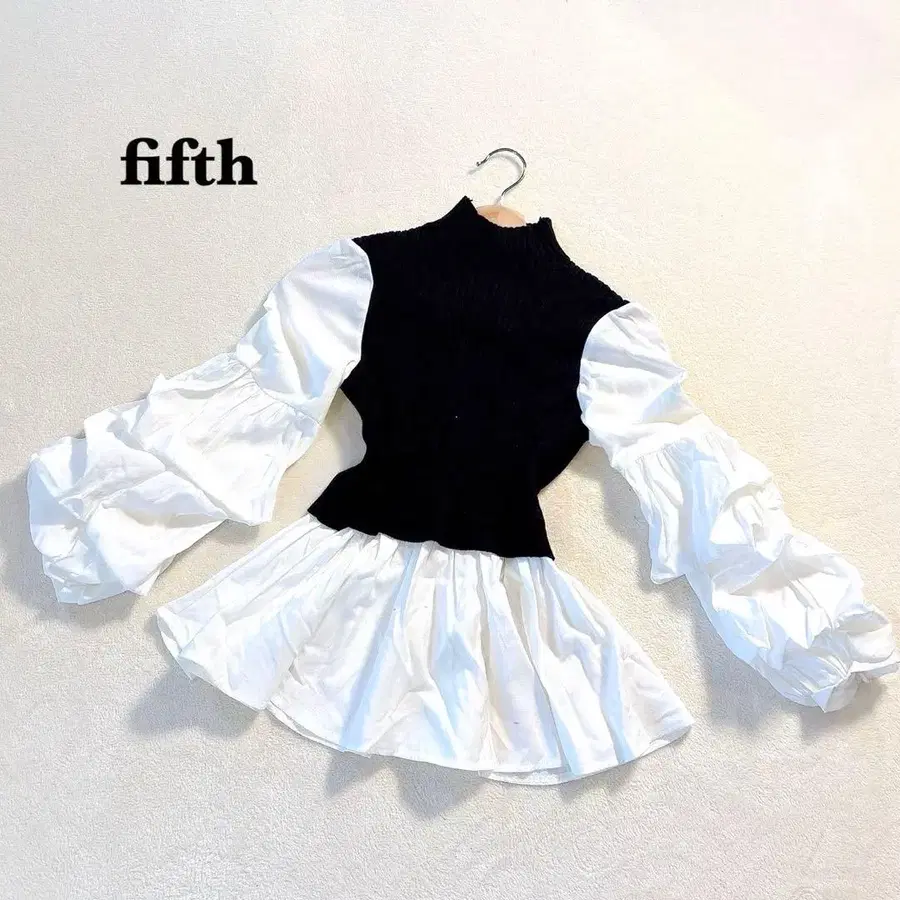 핍스 니트 베스트풍 셔츠 프릴 슬리브 화이트 블랙 긴팔 면 혼방