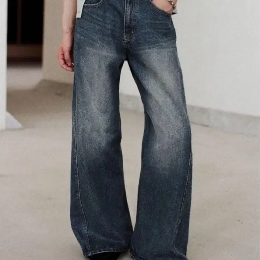 미사용품 wym 위임 CURVED FLARE 배기 데님 clel