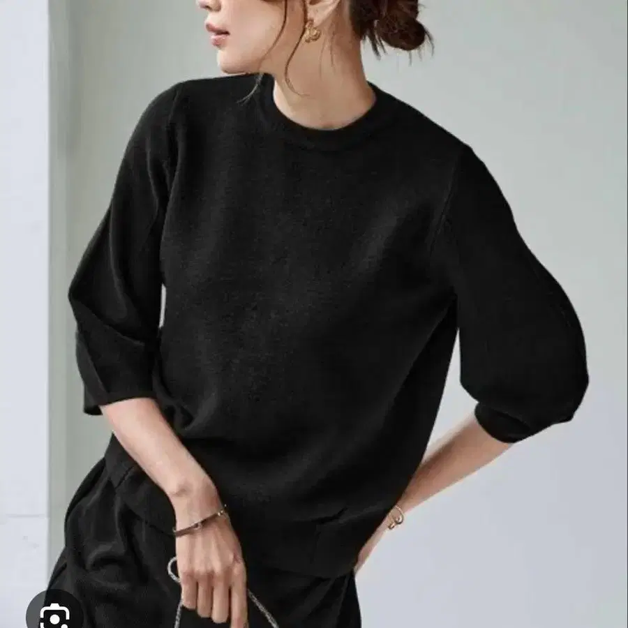 방문해 주셔서 감사합니다. 스타일 델리의 커브 フォルム 니트탑입니다. 색상은 블랙입니다. 봉긋하게 커브를 그리며 부풀어 오르는 소매가 포인트인, 촉촉하고 쫀득한 질감의 니트탑입니다. 기분 좋은 촉감으로 까슬거림이 없고, 보풀이 잘 일어나지 않는 소재입니다. 소매 길이는 7부 소매로 실루엣에 변화를 주며, 슬림해 보인다고 평판이 좋은 フォルム입니다. 부풀어 오른 소매라도 팔의 가는 부분이 보여 부해 보이지 않는 효과를 얻을 수 있습니다. 니트 원단으로는 탄탄하지만 두께는 그리 두껍지 않아 하의에 밑단을 넣어도 자연스럽습니다. 오버롤 스커트나 살로펫 안에도 입을 수 있으며, 단품으로 입어도 물론 멋스럽습니다. 또한 기장감과 여유로운 정도가 절묘하게 조절되어 있어, 밑단을 넣지 않아도 하의와 균형감 있게 매치할 수 있는 뛰어난 아이템입니다. 하복부에 달라붙어 배가 나와 보이는 것을 방지해주므로, 밑단 넣기가 서툰 분들에게도 추천합니다. [ 상품 특징 ] ◆ 착용 시기: 여름 외 ◆ 사이즈감: 적당한 여유가 있는 사이즈감 ◆ 기장감: 다리 끝 정도의 기장감 ◆ 실루엣: 팬츠나 스커트 모두와 잘 어울리는 실루엣 ◆ 목 디자인: 너무 파이지 않은 크루넥 ◆ 두께: 안심감이 있는 두께 ◆ 부드러움: 쫀득한 부드러움 ◆ 착용 주름: 다소 생길 수 있음 (신경 쓰이지 않을 정도. 스티머로 살짝 펴지는 다루기 쉬운 원단). ◆ 보풀: 마찰 집중과 착용 빈도에 따라 가끔 생길 수 있음 (생겼을 경우 보풀 제거기로 처리해주세요). ◆ 신축성: 있음 ◆ 광택감: 없음 ◆ 비침: 없음 ◆ 버튼: 없음 ◆ 지퍼: 없음 ◆ 포켓: 없음 ◆ 안감: 없음 ◆ 손세탁: 가능 ◆ 다리미: 불가 ■ 사이즈 ■ M 사이즈 기장/54 어깨 너비/33 가슴 너비/49 정도 소매 길이/39 밑단 폭/40 작년 공식 사이트에서 구매했습니다. 택 포함 미사용입니다.