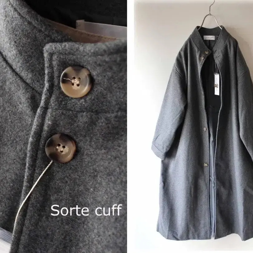 새상품 할인 Sortecuff 차콜 그레이 스탠드 넥 롱 코트 39