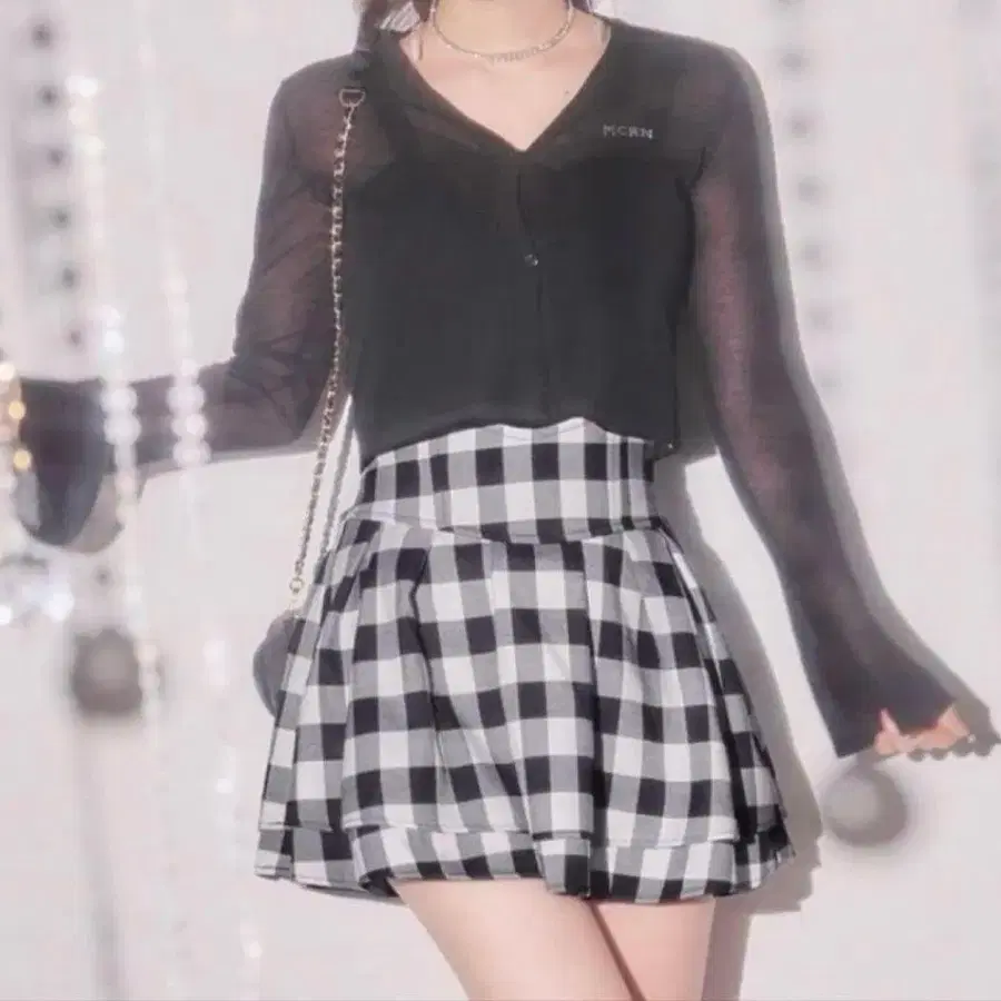 미셸 마카롱 michellMacaron 블록 체크 슬림 레그 스커트 M