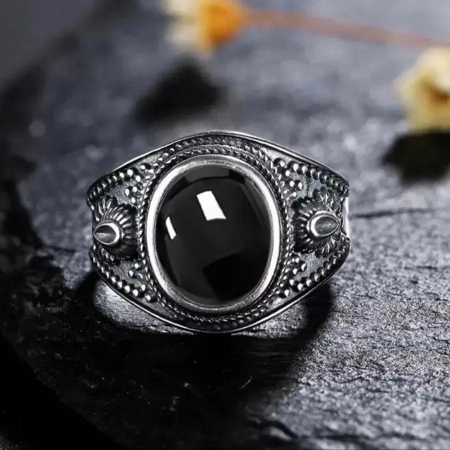 오벌 컷 블랙 오닉스를 장식한 실버 925 반지, 빈티지 스타일로 스타일리시하게 연출됩니다!