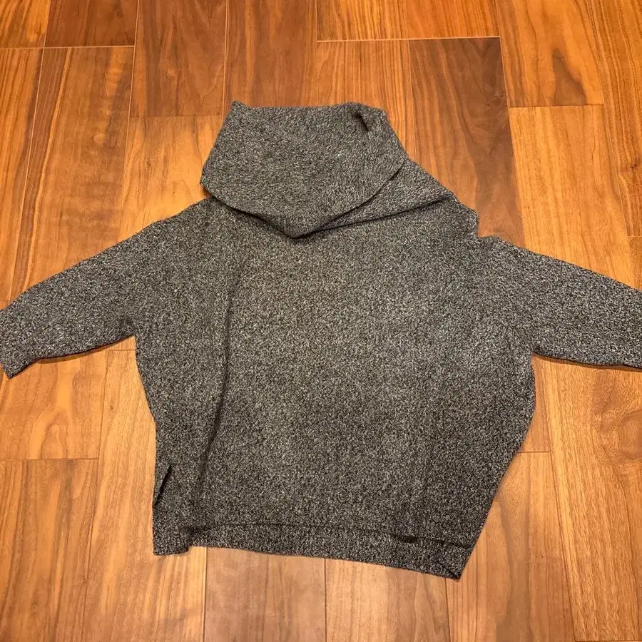 MACPREE 그레이 하이넥 오부 소매 스웨터