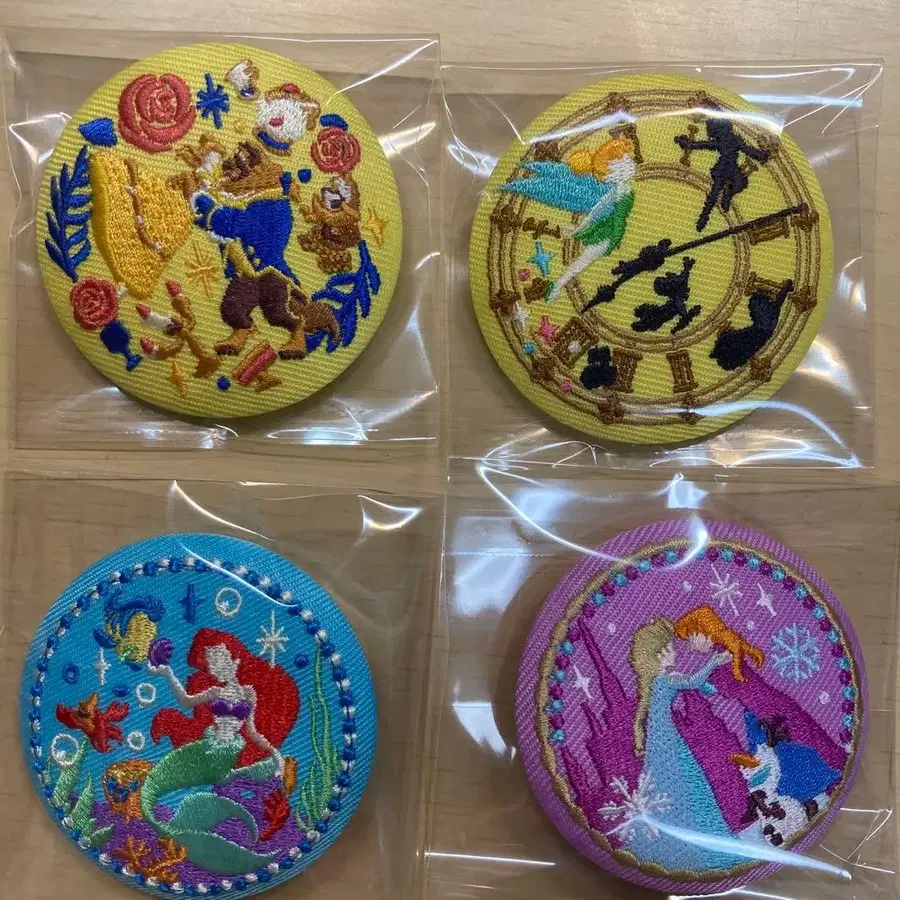 디즈니 자수 캔뱃지 안나, 피터팬, 미녀와 야수, 인어공주