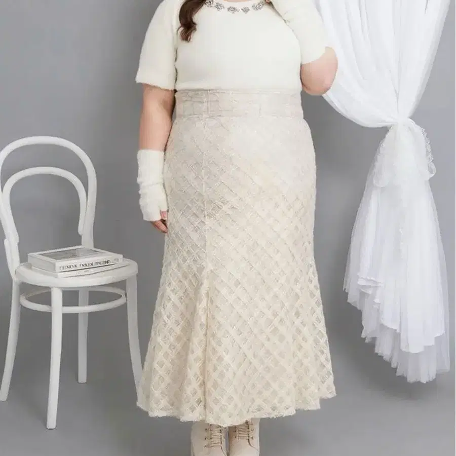 dear my love rose 라메 트위드 체크 머메이드 스커트