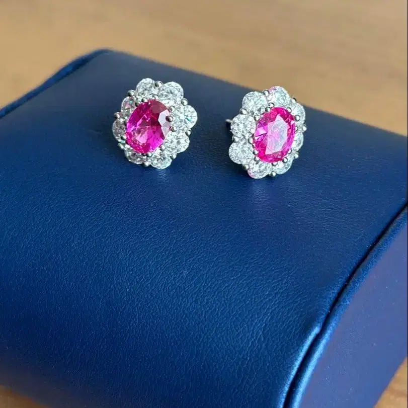핑크 스톤 루비 플라워 디자인 귀걸이