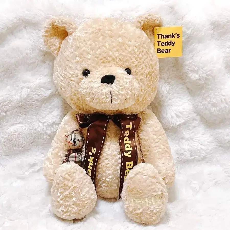 택 포함 땡스 테디베어 대형 베이지 마스코트 포함