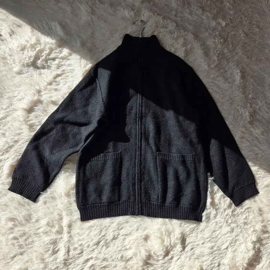 집업 니트 자켓 블랙 하이넥 포켓 부착 심플