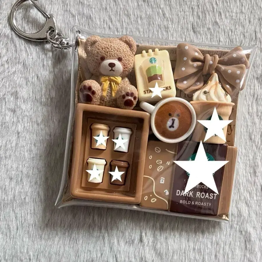 가챠 파우치 [ 옐로우 컬러 리본 곰돌이 카페 브라운 계열 ]
