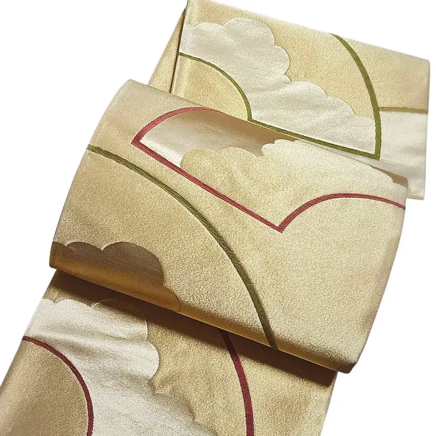 A 170 후쿠로 오비 새상품급 골드 순수 실크 기모노 미재단