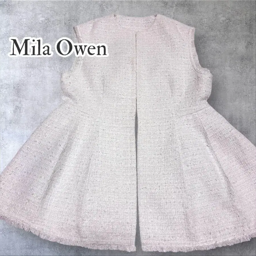 미라 오웬 트위드 베스트 페플럼 프린지 노카라