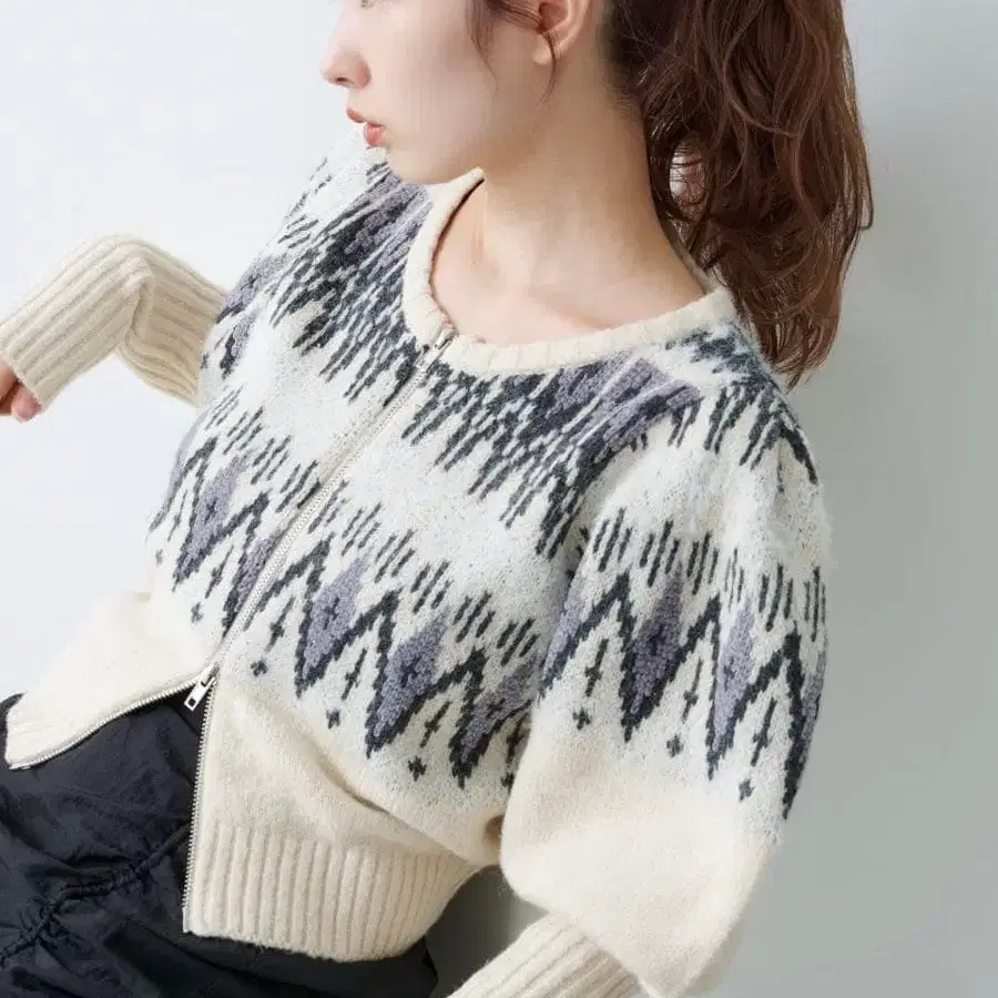 부드러운 니트에 겨울 느낌의 노르딕 무늬를 더한 ZIP 가디건.