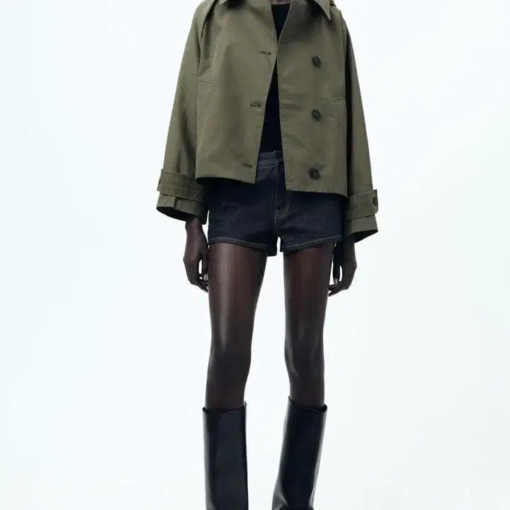 ZW COLLECTION 후드 부착 숏 기장 트렌치 코트 라이트 카키