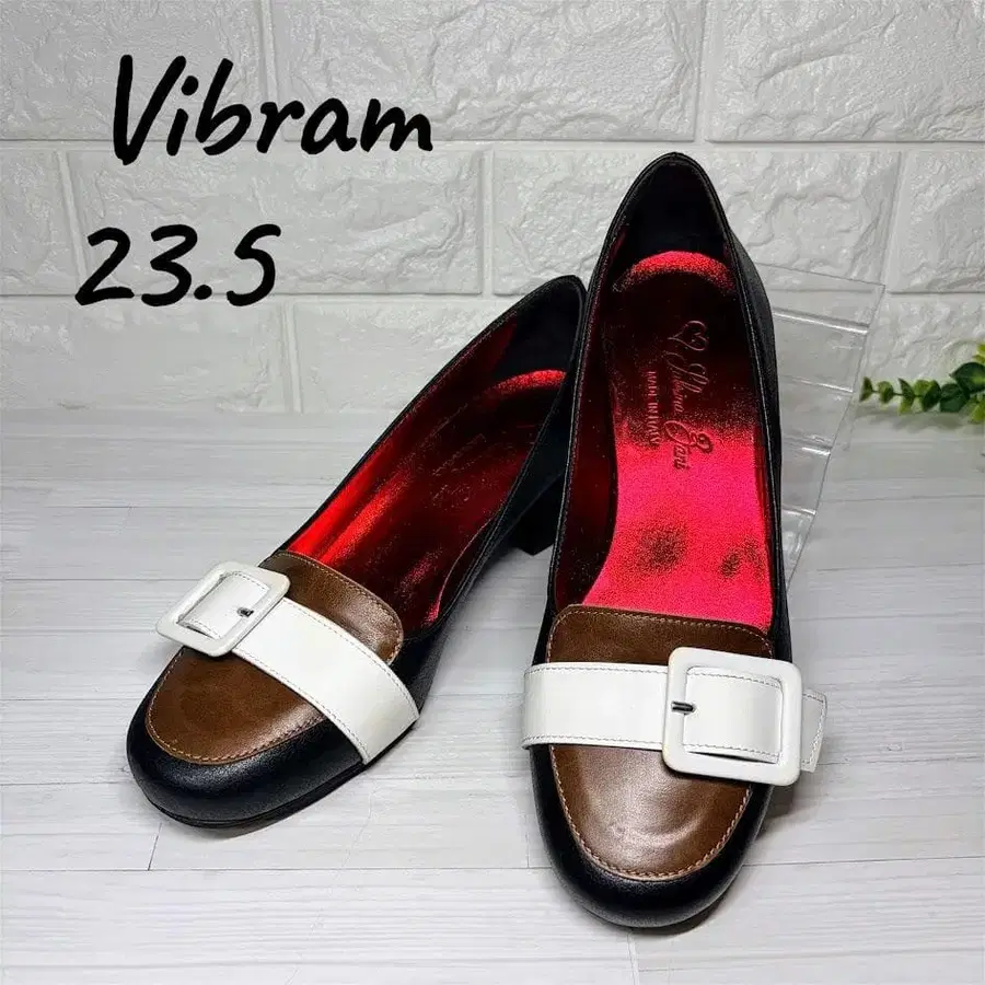 [이탈리아제 천연 가죽] 바이컬러 펌프스 청키힐 비브람 밑창