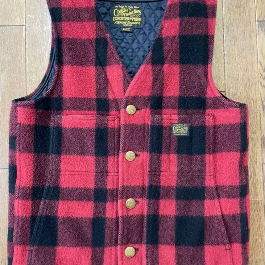 자동 번역되었어요. 원문보기Cootie Productions 쿠티 프로덕션의 체크 무늬 울 베스트입니다.