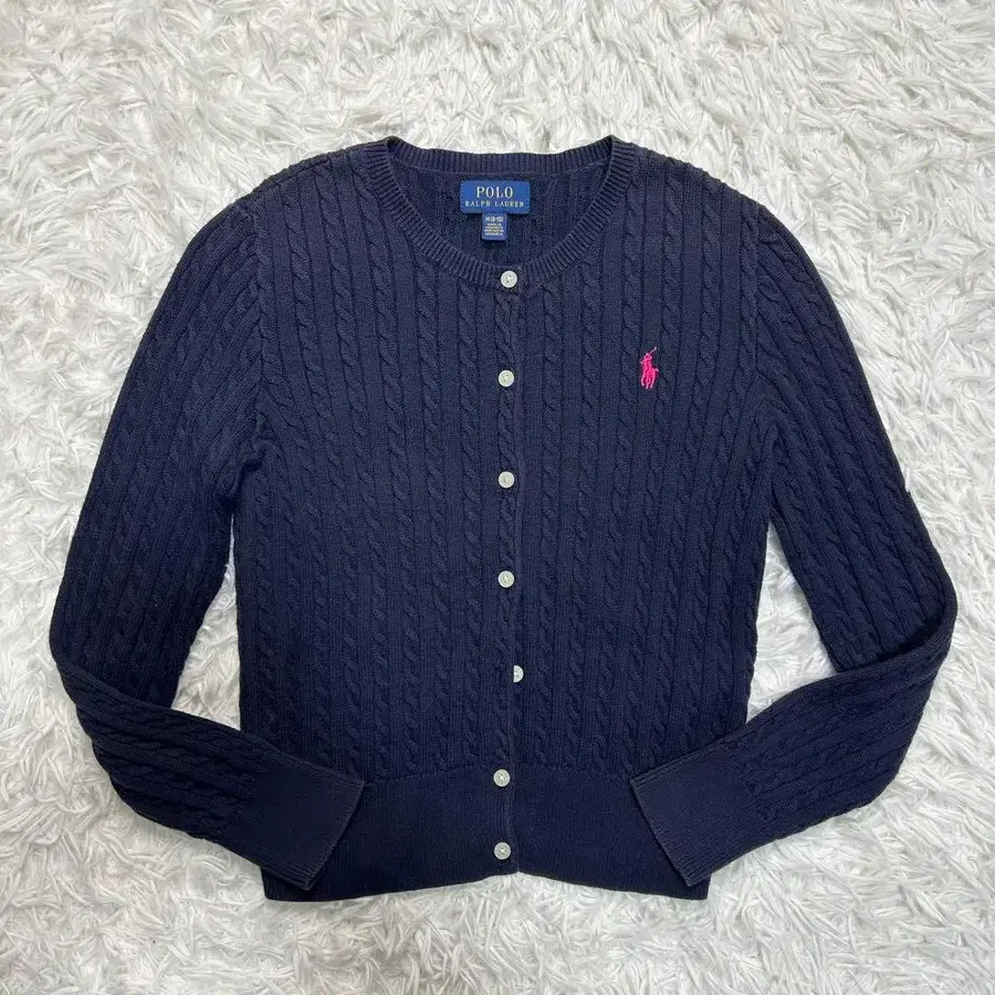 미사용급 폴로 랄프로렌 케이블 니트 가디건 네이비 핑크