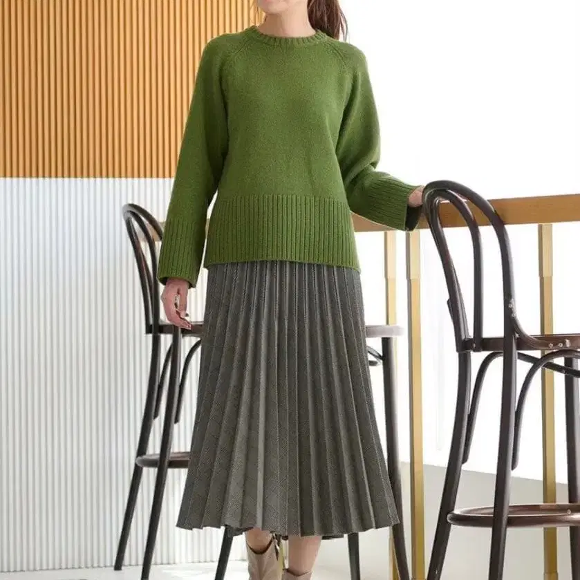 anyFAM 울리쉬 플란넬 플리츠 스커트 그레이 글렌체크