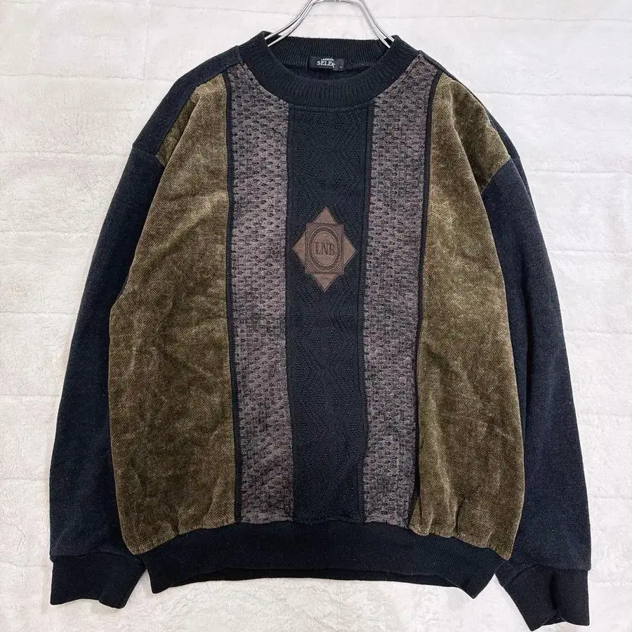 90년대 빈티지 배색 니트 L 블랙 카키 루즈핏 스트릿