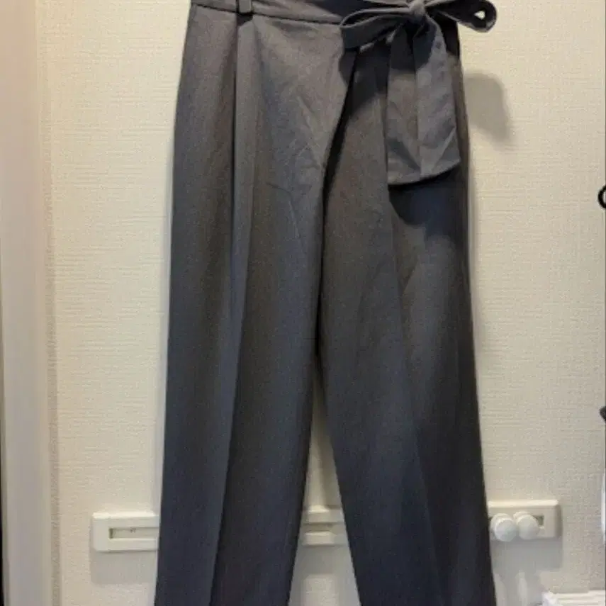 ADORE 아도어 울 와이드 팬츠 리본 포함 차콜 그레이 40 L