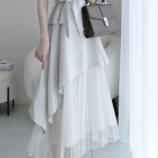 리본 벨트 부착 아지메 트렌치 원피스