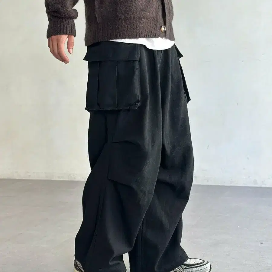 카고 팬츠 블랙 와이드 실루엣