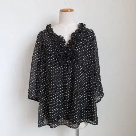 도트 무늬 프릴 장식 오부 소매 튜닉