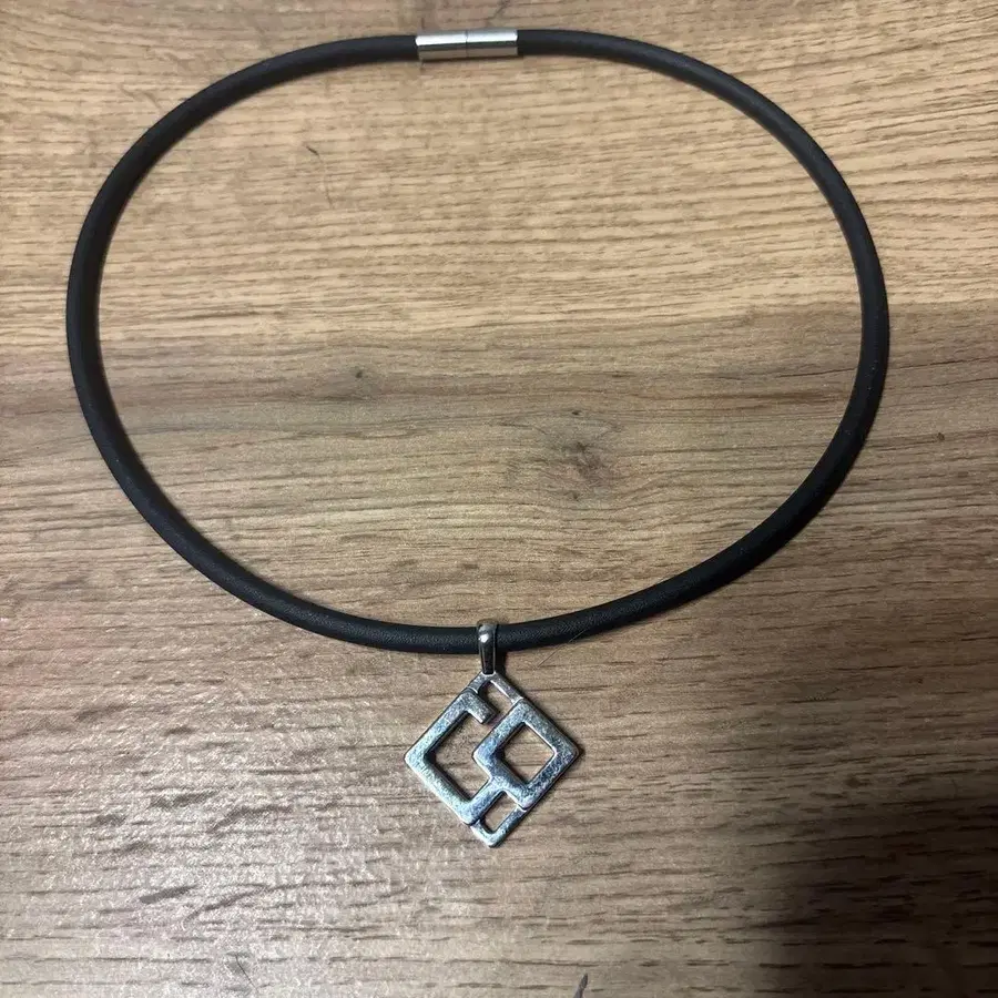 기하학 디자인 목걸이 블랙 실버