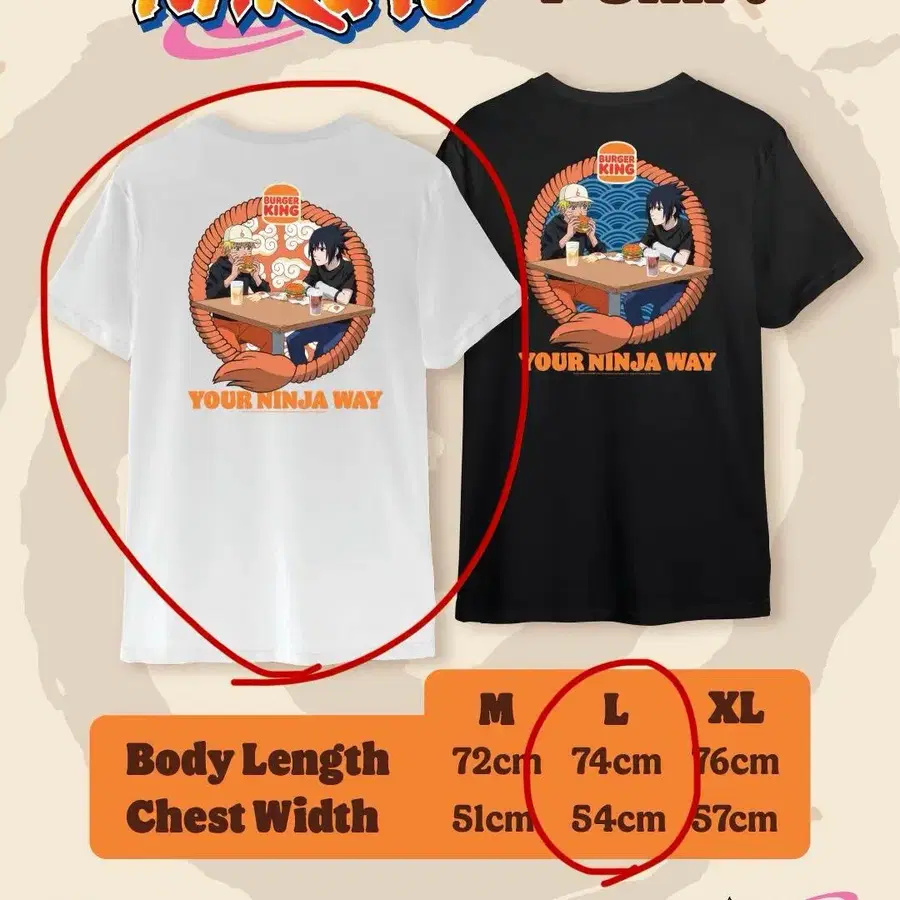 버거킹 나루토 해외 콜라보 T셔츠 화이트