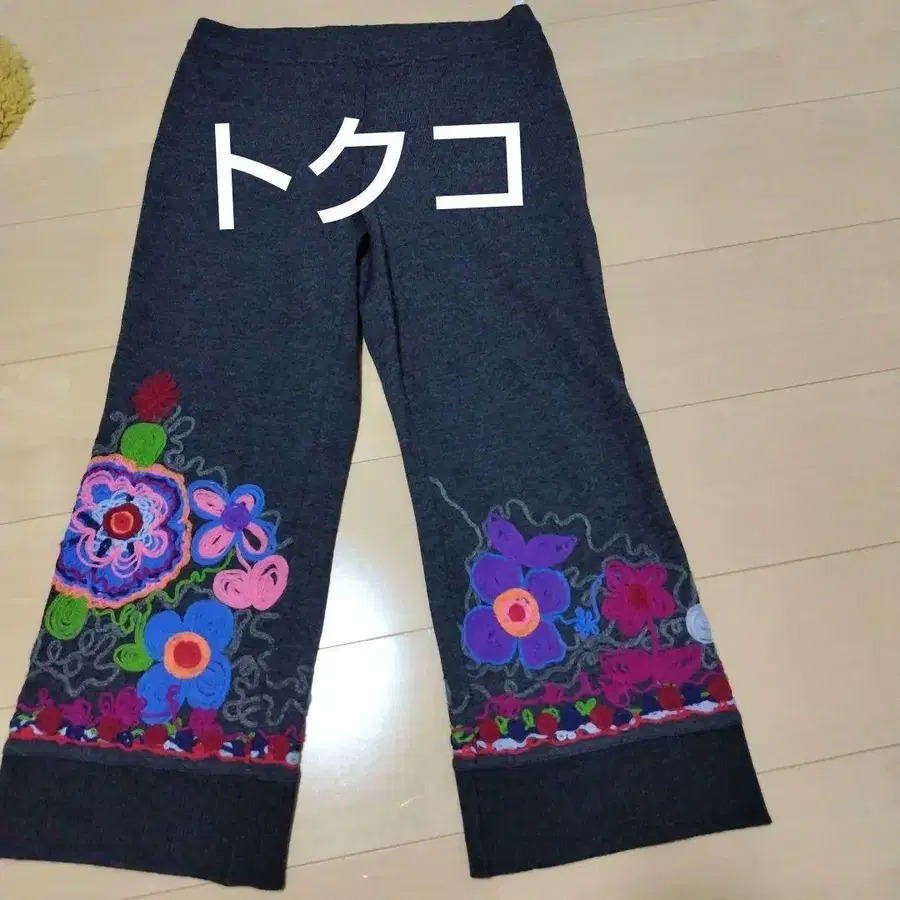 TOKUKO 컬러풀 자수 릴랙스 팬츠 9호
